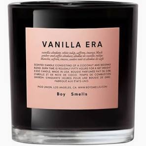 of Boy Smells "Vanilla Era" Candle - a blend of modern sophistication and timeless vanilla. This fragrance fills your home with elegance, balancing creamy vanilla with hints of spice and sweetness, crafted from high-quality wax and fragrant oils. With notes of vanilla bean, tonka bean, and musk, this aroma is soft and inviting. The addition of sandalwood adds depth and warmth, while floral undertones provide a touch of freshness, making it perfect for any occasion. Whether you seek relaxation or a welcoming aroma, this candle delivers a luxurious olfactory experience.