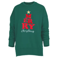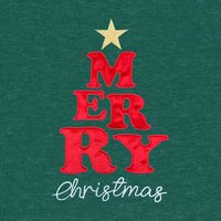 Stay cozy and stylish with the Merry Tree Appliqued Melange La Jolla Fleece. Crafted from a super soft blend of 55% cotton and 45% polyester, it offers unmatched comfort. Its longer length and side slits add a fun twist, making movement easy and playful. The standout applique features velour letters combined with detailed embroidery, bringing a cheerful charm to your casual look. Perfect for anyone who loves comfort with a splash of whimsy!