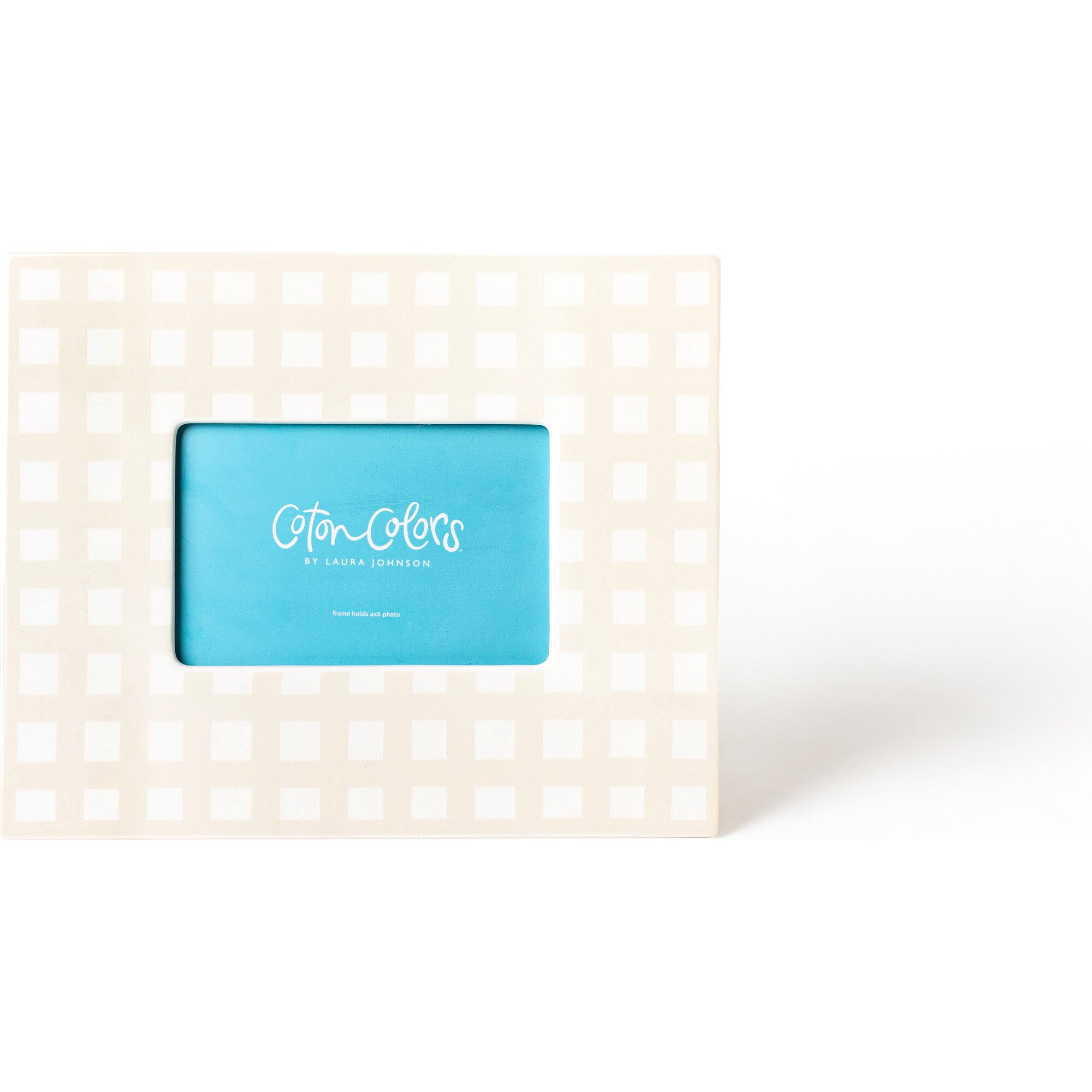 Share your special memories with a picture frame that you can display anywhere in the home. Our Ecru Gingham Frame lets you display your favorite photos on a tabletop or hung on the wall. Showcase pregnancy photos or personalize the frame as a sweet gift for a baby shower. This frame is sized for 4x6 photos and features a handcrafted ceramic design and hand-painted ecru gingham pattern. Whether you use it to display your favorite photos in a nursery or give it as a gift, this frame makes it easy to display your memories in style. Create an heirloom for family photos with our Ecru Gingham Frame.
