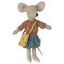 A classic Maileg item; Mum mouse, now in new clothes. This mouse fits furniture and accessories in size mouse. Buy more clothes separately, clothes in size mum/dad fit this mouse.