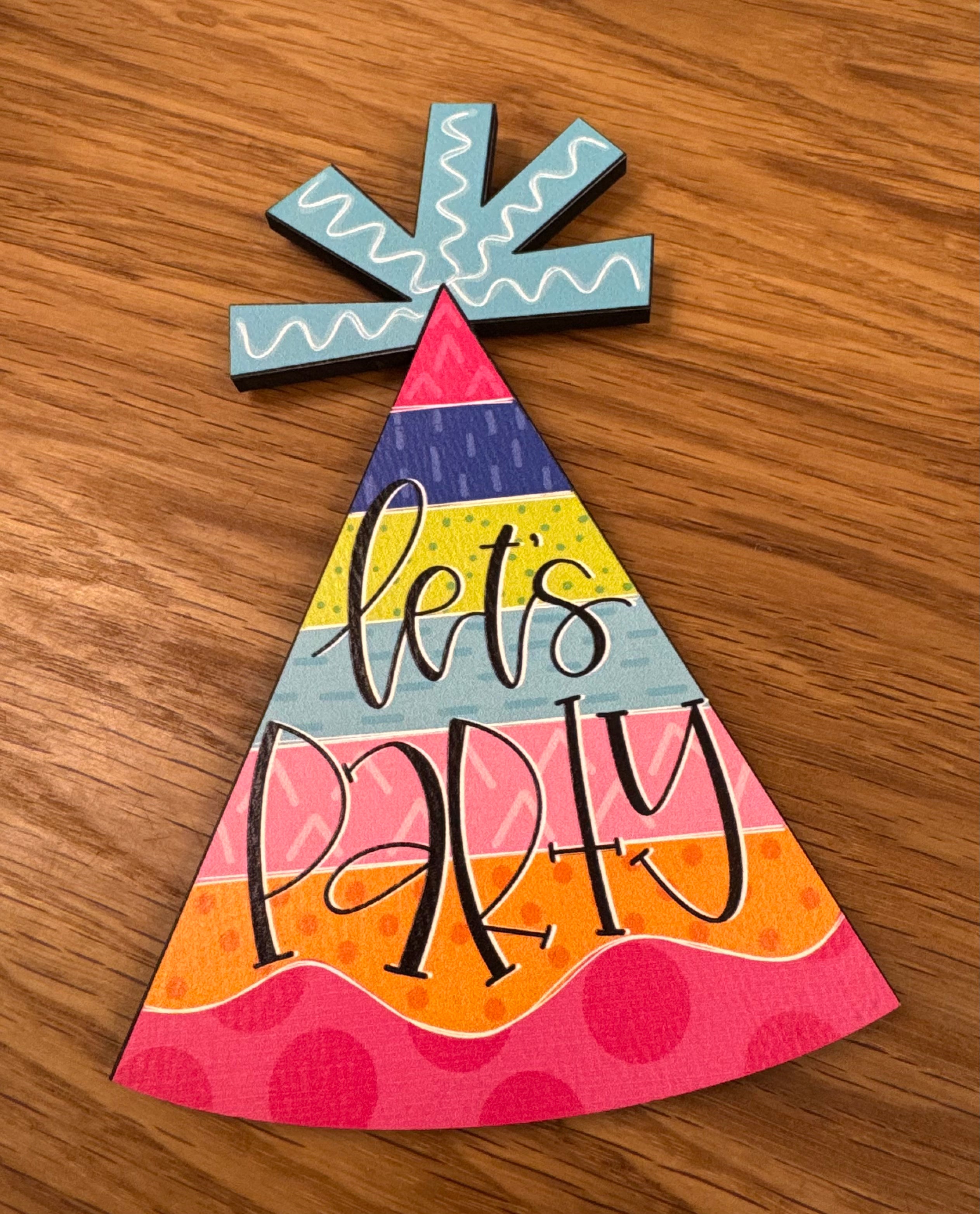 This attachment is cut out of 1/4 inch Birch and then painted. It has industrial strength velcro that attaches to the Interchangeable door hangers. Please treat printed attachments as you would painted attachments- keep in a dry place away from harsh weather conditions. Also place in plastic sleeve when storing. The sizes of printed attachments are approximately 8"