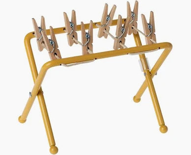 All families have a lot of laundry. This drying rack is made for the mouse family and fits their small-sized clothes. This set includes a drying rack and small wooden pegs.