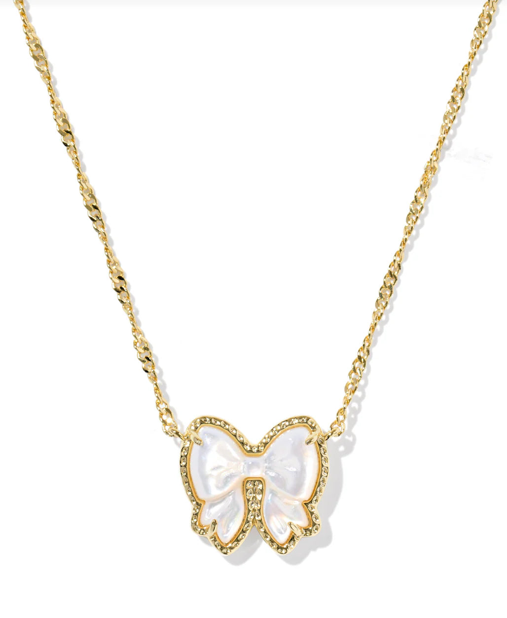 Wrap up your look with the Haley Gold Bow Short Pendant Necklace. Complete with our signature hoofprint detailing, custom-carved mother-of-pearl, and a reversible pendant for double the styling options, this necklace is a must have for any collection.