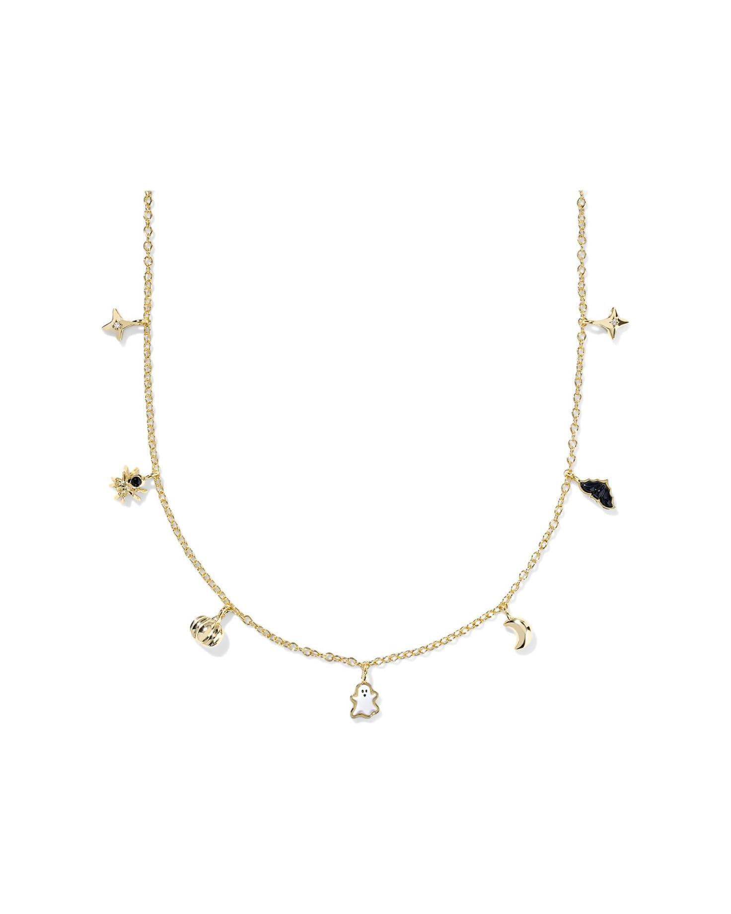 - Celebrate spooky season in style, adorning the Kendra Scott® Halloween Strand Necklace. Crafted in gold-plated brass and adorned with a curated collection of whimsical Halloween charms, this necklace blends fun with finesse. Each charm is accented with enamel and twinkling cubic zirconia gems set in prongs for a luxe look that dazzles day or night. With a secure lobster clasp for easy wear, this synthetic creation brings hauntingly good vibes to any outfit.