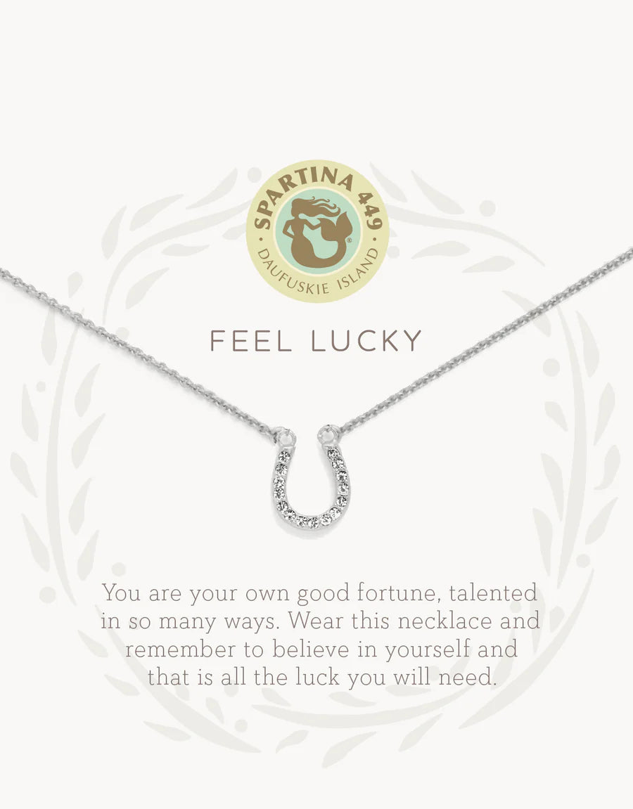 Wear our Feel Lucky Necklace as a reminder to believe in yourself. Featuring a horseshoe charm, this special piece comes packaged inside a beautiful box with the message: "You are your own good fortune, talented in so many ways. Wear this necklace and remember to believe in yourself and that is all the luck you will need."