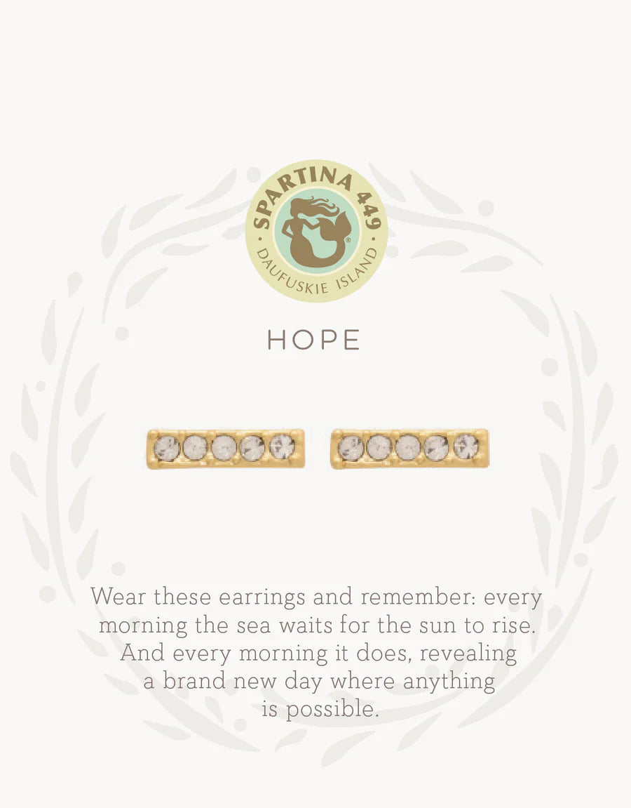 Wear our Hope Earrings as a reminder that anything is possible. Featuring a gem bar pendant, this special piece comes packaged inside a beautiful box with the message: "Every morning the sea waits for the sun to rise. And every morning it does, revealing a brand new day where anything is possible."