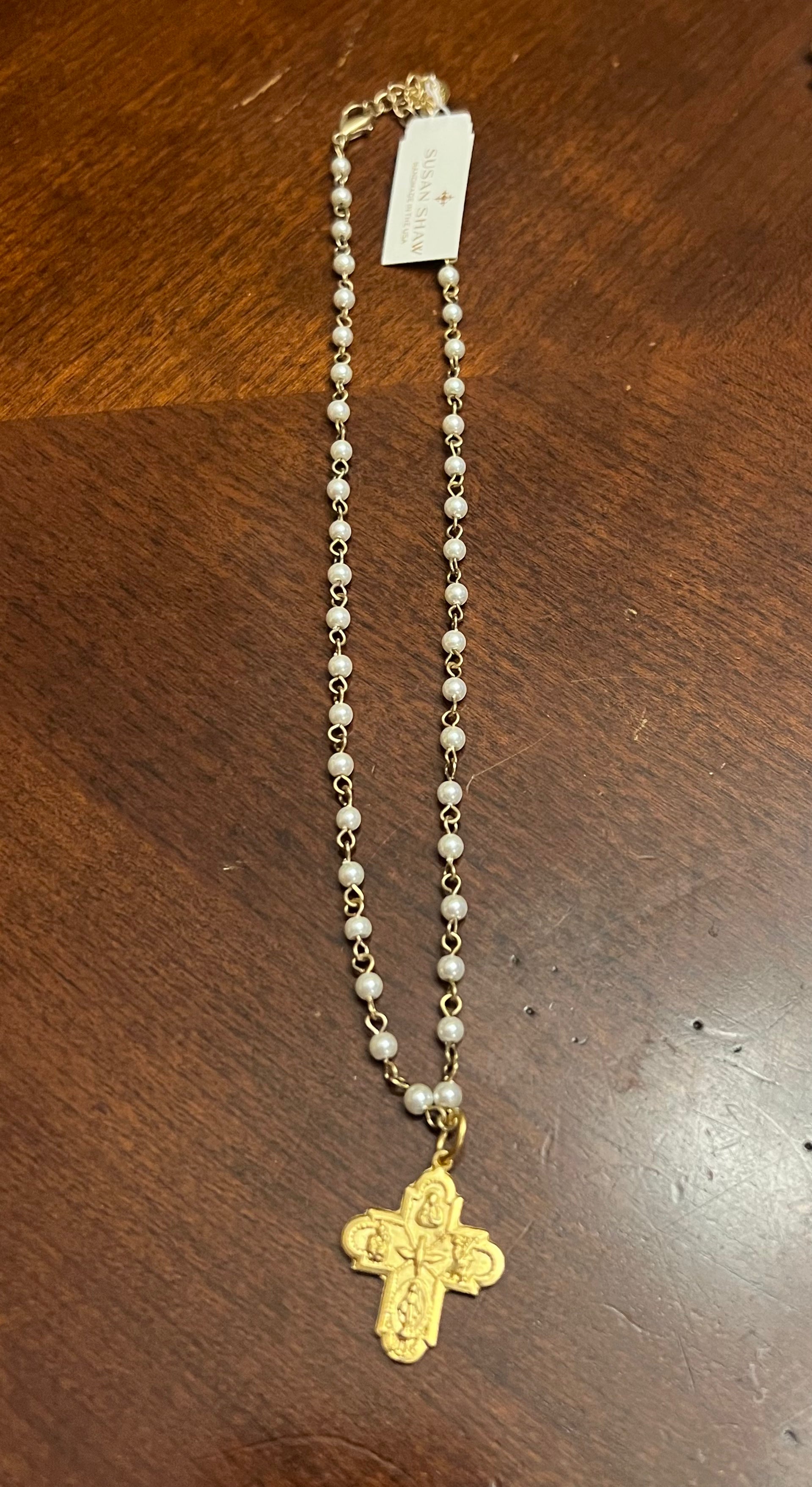 Susan Shaw Pearl Cross Necklace