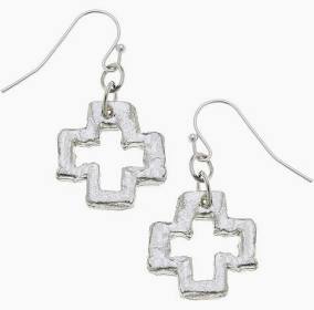 Susan Shaw Small Open Cross Earrings in Silver