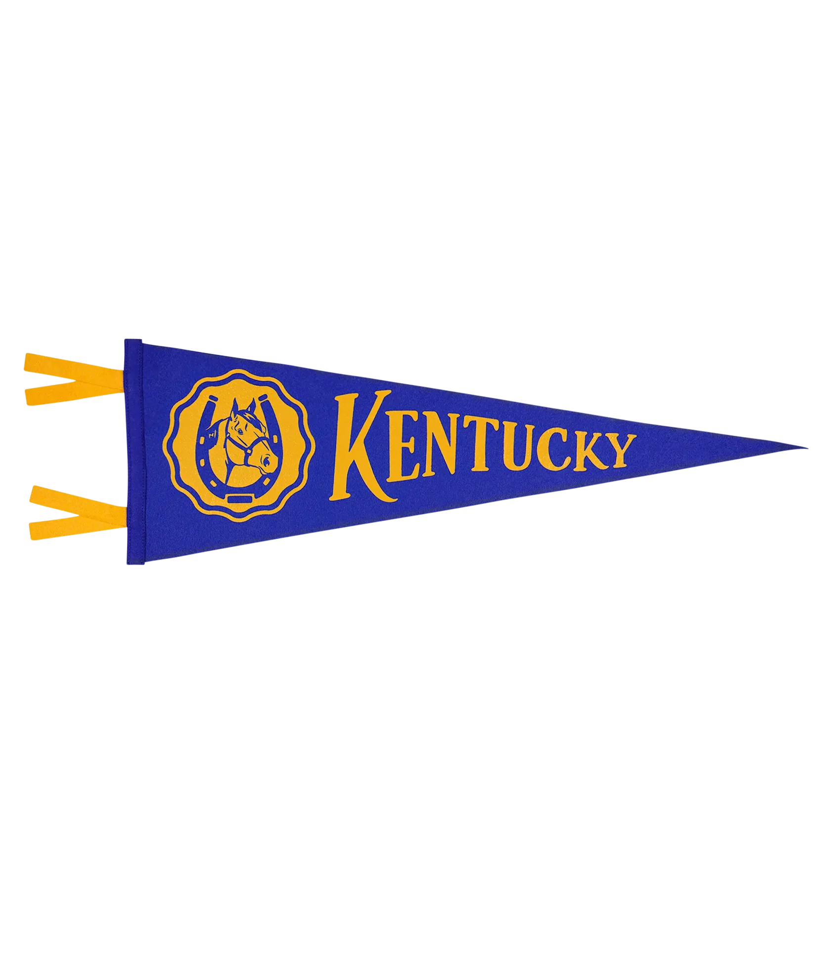 This royal blue and gold pennant, featuring a detailed horse and horseshoe illustration, is a tribute to equestrian heritage and makes a perfect gift for any Kentuckian. Ideal for home decor, this pennant is a charming addition to any space celebrating Kentucky’s love for horses and racing.