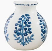 - This charming blue floral print vase is a delightful addition to any home decor. Crafted from high-quality stoneware, it features a unique hand-stamped design that showcases intricate floral patterns in a soothing blue hue. The vase is further enhanced by a meticulously hand-painted rim, adding a touch of elegance and artisanal craftsmanship. It is the perfect size for displaying fresh flowers, dried arrangements, or as a standalone decorative piece. Its durable stoneware construction ensures longevity, making it a timeless piece that can be cherished for years to come.