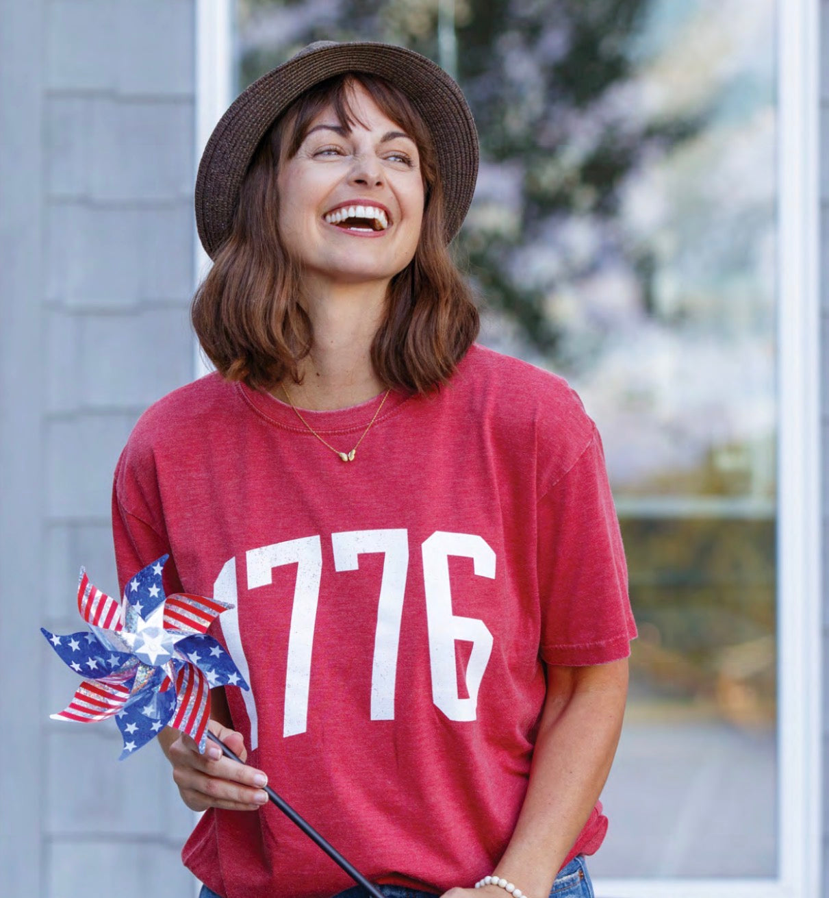 Celebrate American heritage with this vintage washed tee featuring a bold screen-printed "1776" across the chest. Crafted from a comfortable 60% cotton and 40% polyester blend, this tee offers the perfect balance of softness and durability. The vintage wash gives it an effortlessly worn-in look that pairs well with any casual outfit. With a relaxed, waist-length fit designed for all-day comfort
