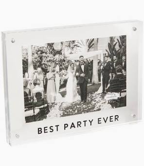 The Magnetic Acrylic Frame is a sleek and modern way to display your cherished memories. Measuring 4" x 6", this frame is crafted from high-quality acrylic, providing a crystal-clear view of your photos while adding a touch of elegance to any space. The magnetic design ensures that your pictures are securely held in place, making it easy to switch out photos whenever you desire. With its minimalist aesthetic, this frame complements any decor style, whether placed on a desk, shelf, or mantel. The overall dimensions of 5 3/4" x 7 3/4" offer a substantial presence without overwhelming your space, making it a perfect addition to your home or office. Ideal for showcasing family portraits, vacation snapshots, or artistic prints, this Magnetic Acrylic Frame is both a functional and stylish choice for preserving your most treasured moments.