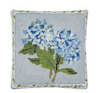 This blue hydrangea pillow will look perfect in any room. The variety of blues and greens of the hydrangea complement the soft blue background. This pillow measures 18 x 18 inches.