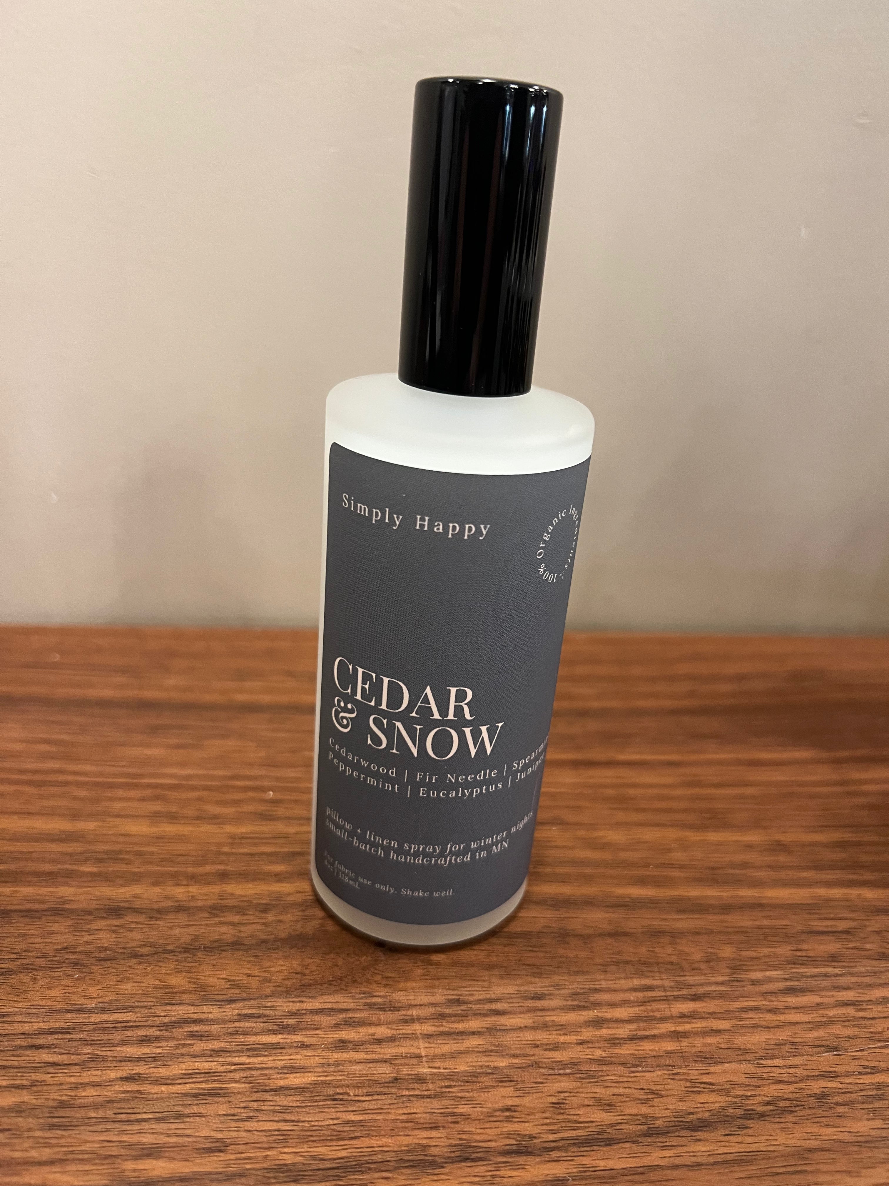 Crafted with only organic, non-toxic ingredients, Cedar & Snow offers a clean, natural way to scent your linens, pillows, or room—free from anything artificial.