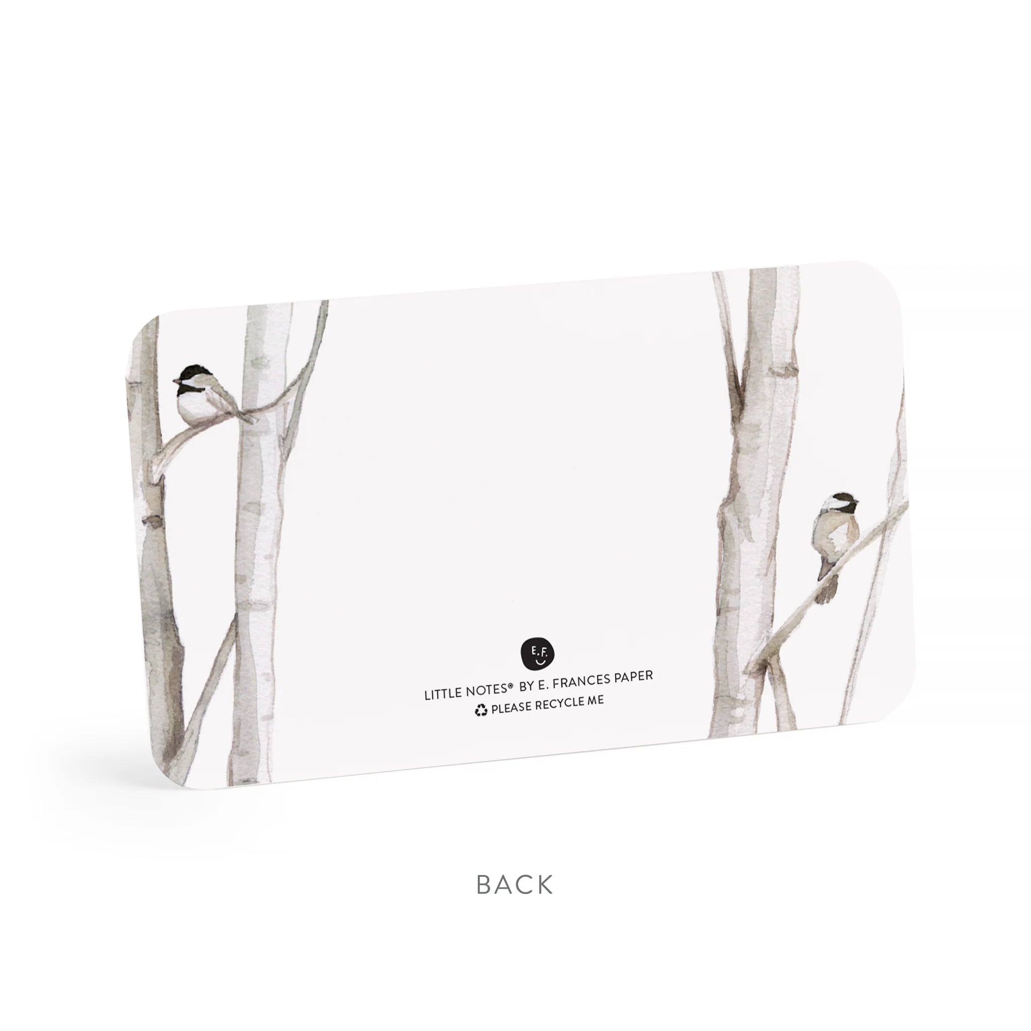 The original Little Notes® are small notecards with big charm. These Chickadee Little Notes® will unlock smiles, spread cheer, and send more love! Each Little Note has a hand painted watercolor illustration on the front and back. And yes, you read that correctly - each box contains 85 tiny notecards for you to use unsparingly! From memos and reminders to lunch box notes, place cards, and gift tags, the possibilities for these versatile cards are endless. Let your creativity soar as you find ways to inspire joy and use Little Notes® in your everyday life. Widely imitated but unmatched in their unique charm, these are the ones that ignited the craze!