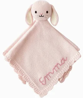 Beautifully hand-knit and luxuriously soft, our heirloom-quality loveys are designed to comfort your little one from day one. Each one is handcrafted from 100% organic cotton and finished with delicate scalloped trim and sweet hand-embroidered details that coordinate perfectly with our beloved baby animal collection.