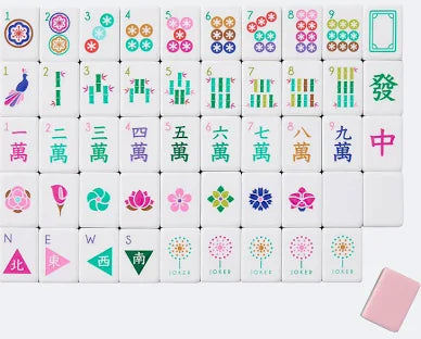 Set includes Tiles, Dice/Coin Bag and 4 Instructional Cards (If playing American Mahjong, will need to purchase NMJL Playing Card separately).