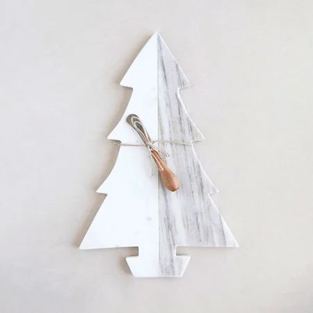 This cheese/cutting board is a stylish addition to any holiday parties. Made out of marble, this board is in the shape of a Christmas tree, and matches any decor with its neutral white and buff color. Whether used for cutting foods in a festive way, or displaying homemade appetizers in style, this piece is a festive must-have for any kitchen.