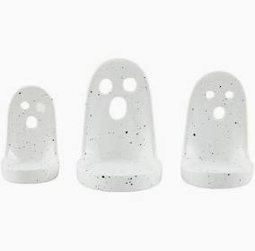 - This set includes three hand-painted speckle ceramic ghost tea light holders