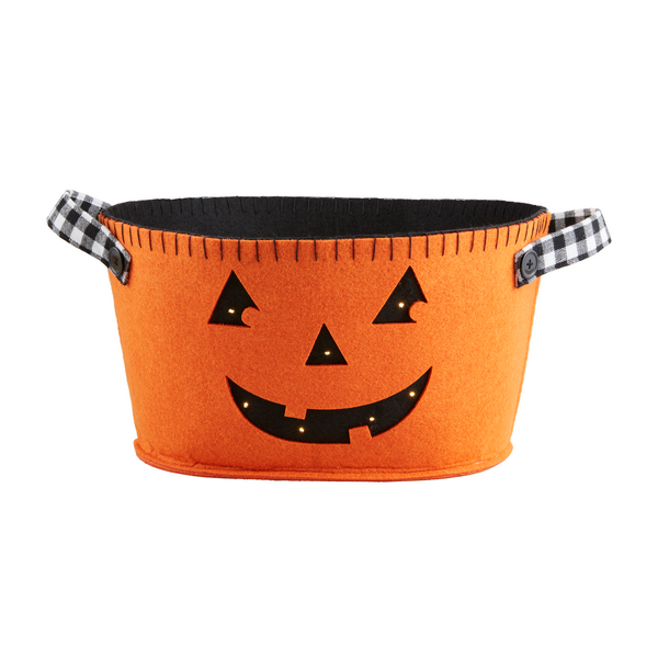 - The Reversible Ghost & Jack-O-Lantern Bucket is the perfect accessory for trick-or-treating or Halloween parties. This unique candy bucket is made of durable felt and features a reversible design, allowing you to switch between a spooky ghost and a grinning jack-o-lantern. The mesh facial features add a fun and eerie touch, while the LED light-up detail adds an extra element of excitement. Measuring 7" x 12" in diameter, this bucket is spacious enough to hold plenty of candy and treats. Get ready to collect candy in style with this Reversible Ghost & Jack-O-Lantern Bucket!