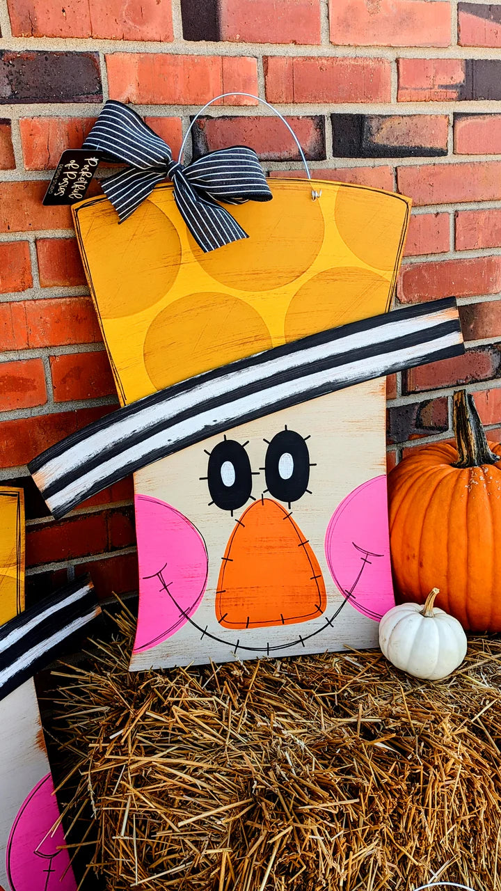 This sign is cut out of 1/4 inch Birch and painted with acrylic paint. It is sprayed with a clear protective coating that prevents chipping, peeling, fading, or yellowing. It hangs from sturdy wire and is accessorized with a bow to match. Every door hanger is hand painted by myself so there may be very slight variations between your actual design and what you see here.
