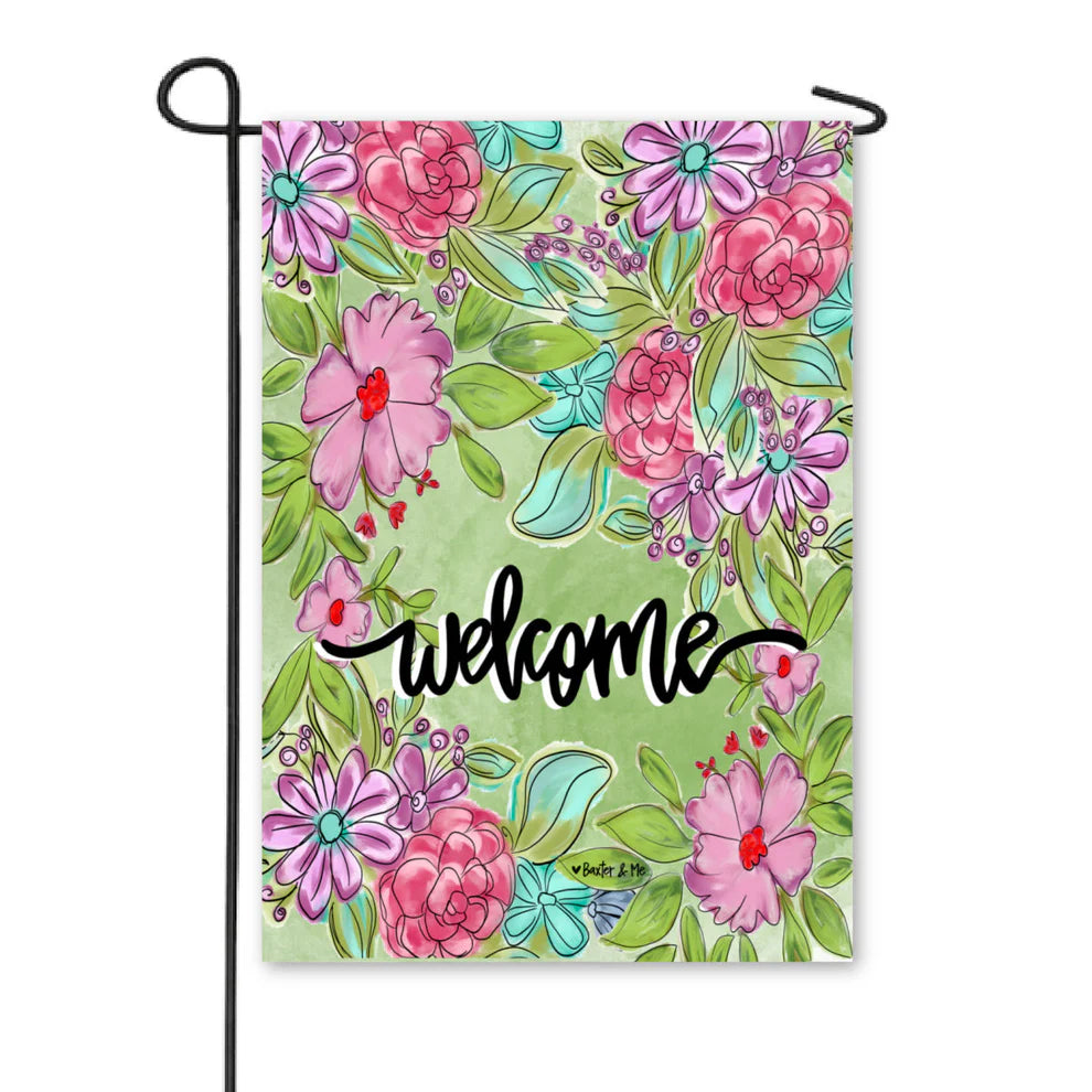 Welcome Pretty Pink and Purple Floral Garden Flag