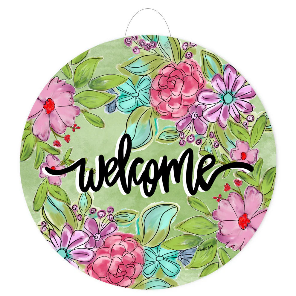 Welcome Pretty Pink & Purple Floral Door Hanger